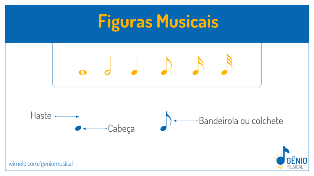 As figuras musicais representam a duração do som, possuindo formatos diferentes para cada duração.
