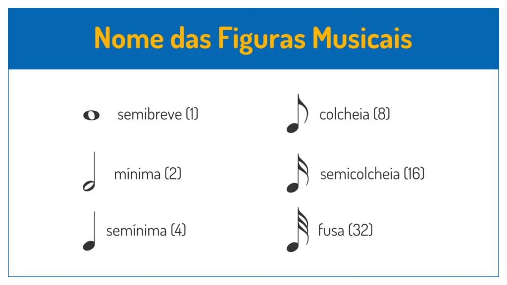 Da mesma forma, existem as figuras de pausa, que indicam o silêncio na música, e cada uma delas tem a mesma duração de uma figura de som correspondente.